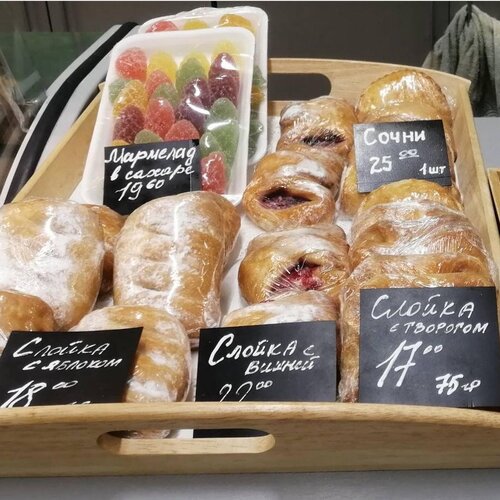 Эта кулинария напоминает старые времена, не хватает на прилавке весов с гирями)))